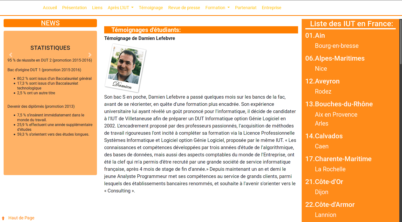 Projet tutoré du S1 de 1ère année en DUT Informatique. C'est un des tout premiers sites réalisé et je me rend aujourd'hui compte des faiblesses du projet, il me permet cependant de constater mon évolution depuis mes débuts.