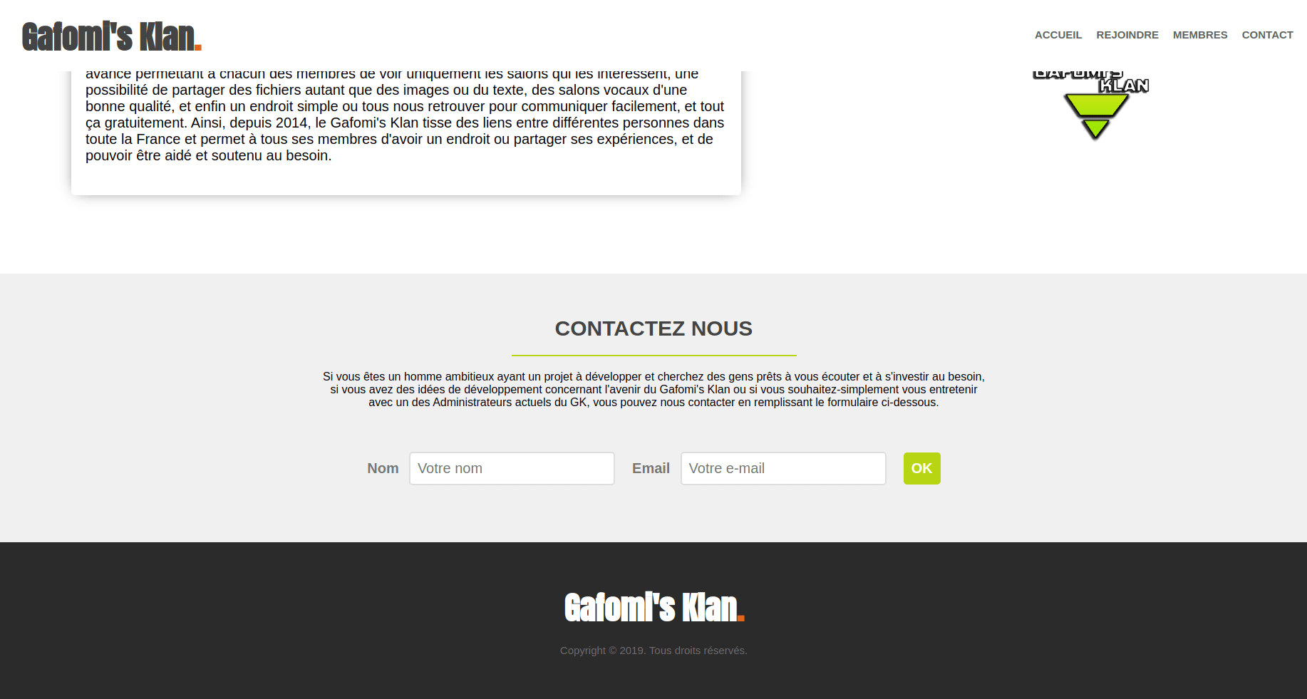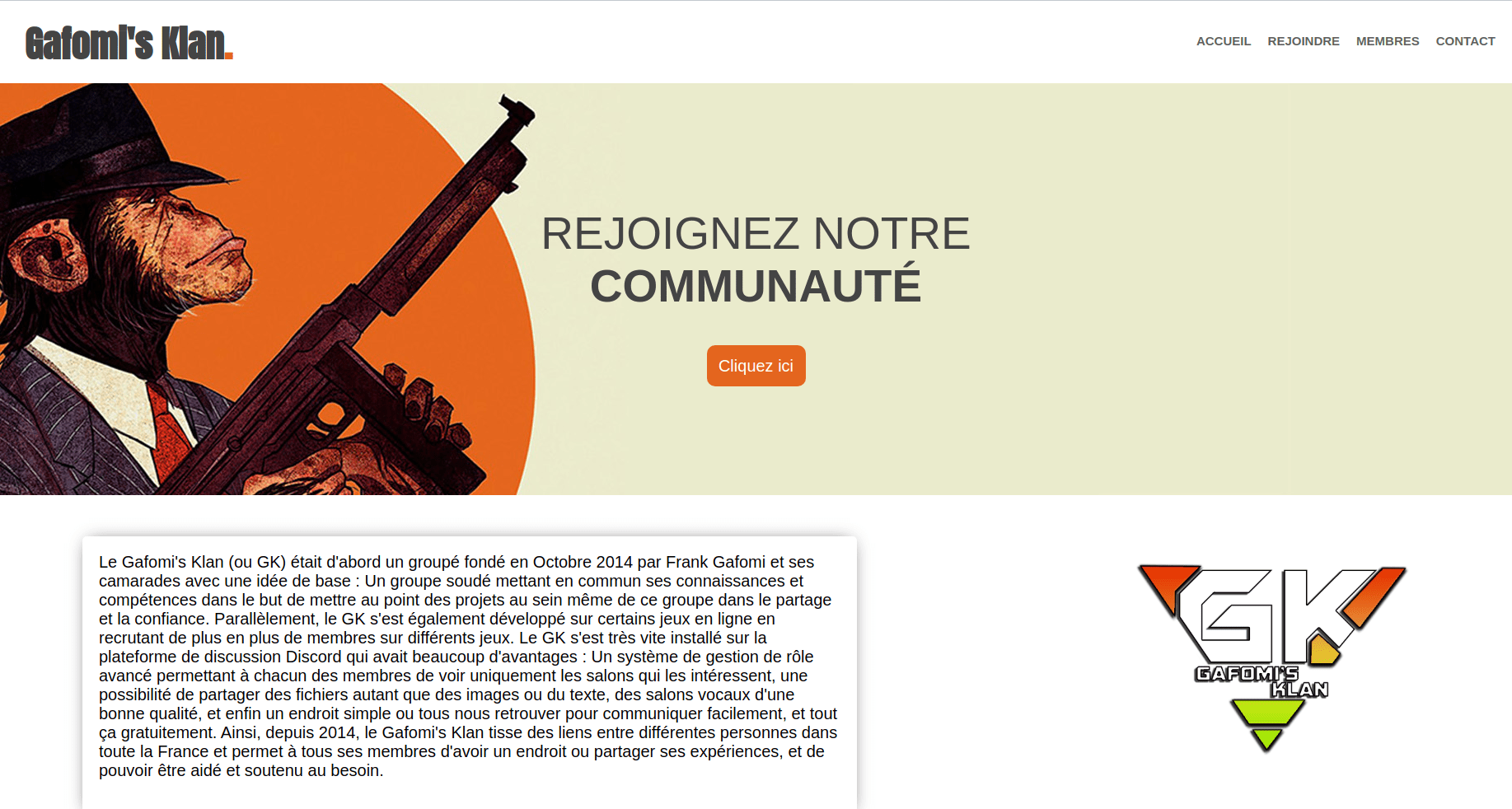 Site statique & responsive, réalisé from scratch. Ce site servait de page d'accueil et de redirection pour la communauté multigaming "Gafomi's Klan"
