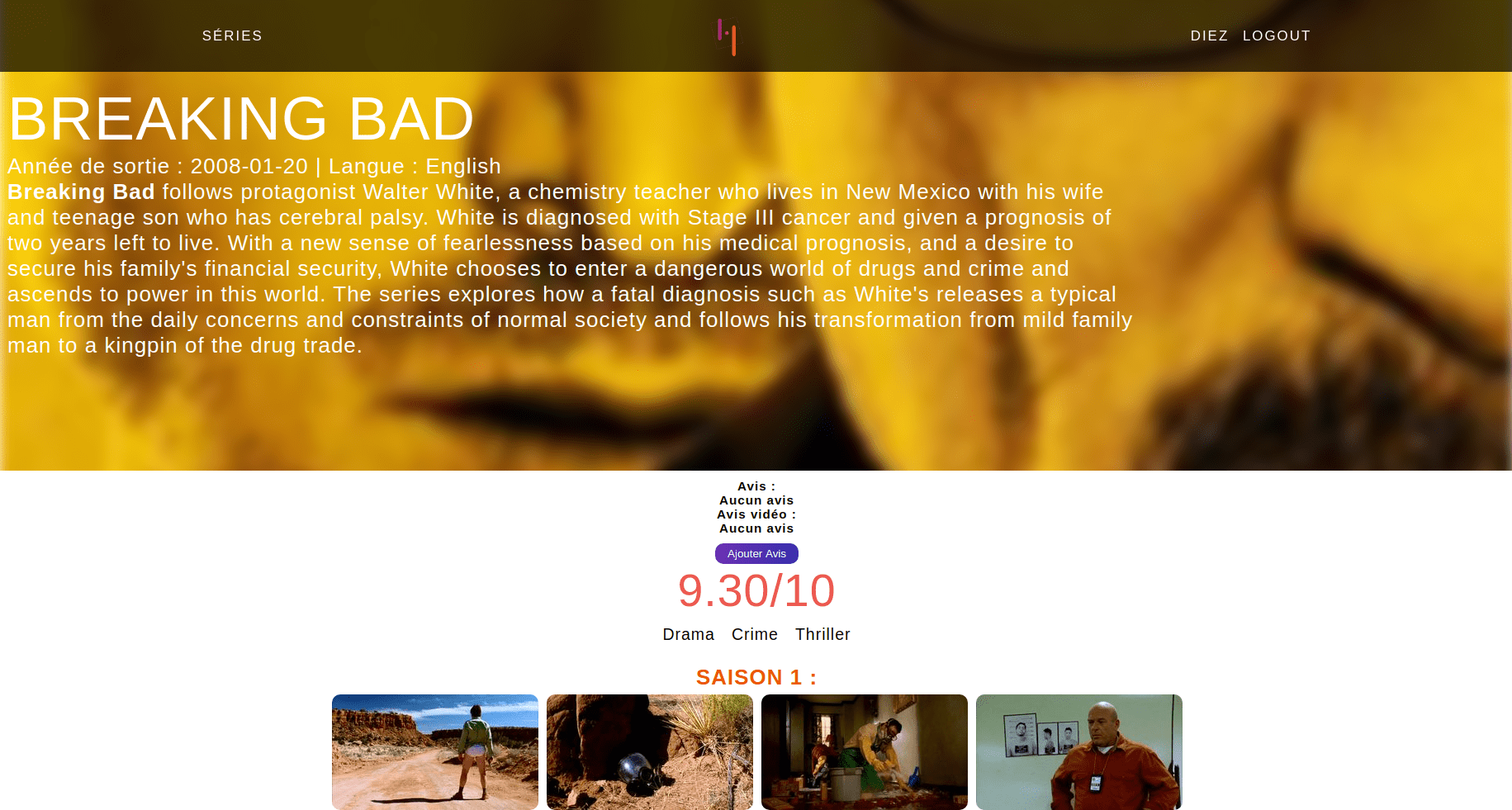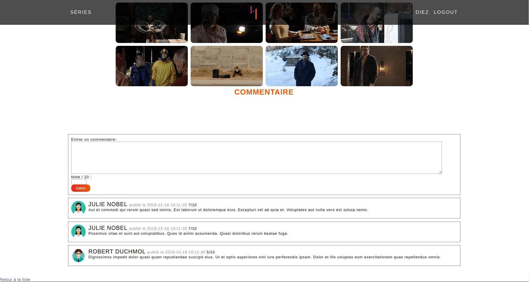 Site de critiques de série développé en 36 heures dans le cadre du marathon web 2019 à l'IUT de Lens en collaboration avec des étudiants de DUT MMI. Celui-ci possède un back-end complet.